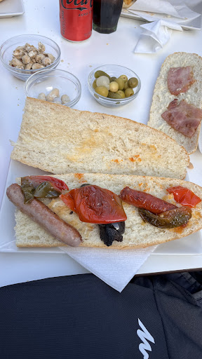 VERGONZOSO. La atención pésima, parece que les moleste que les pidas, el chico que nos atendió fuera tenía un pase pero el de dentro me vio 5 minutos esperando en la barra para PAGAR y no me hacía ni caso y seguía poniendo cafés y cobrando a ciclistas. Tuvo que venir el otro chico a cobrarme que tenía más lío. Ni un gracias, ni una buena cara, fatal. Luego el almuerzo es de chiste, 3 trozos enanos de embutido con 3 trozos de pimiento. No tengo foto del de tortilla pero eran 3 trozos ENANOS dentro del pan con espacio entre ellos como si estuvieran peleados, y luego encima dos trozos de bacon (que no lonchas enteras, ojo al ahorro). Lo peor de todo es que comes pan con pan y encima cuesta 5 euros el almuerzo SIN bebida y café. Nos salió por 8,50 el peor almuerzo que hemos comido jamás. Una pena, porque si me llenan el bocadillo igual no me sabe tan mal probar un almuerzo que me cuesta más caro que los que hacen en Valencia ciudad. Espero que se lo tomen constructivamente, si ese bar funciona es porque lo mantiene gente que está de paso. Lo único...