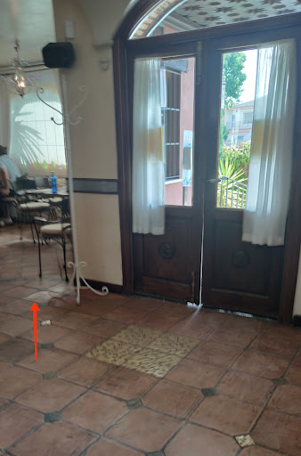 2- El comedor: ridículo, muy mala zona. Un 4x4 de 3 mesas al lado de la puerta de entrada. Que habiendo pedido cita con bastantes días de antelación, nos pongan al lado de la puerta, parecía una taberna. Fatal e incómodo. Las MOSCAS nos hacían compañía y se hacía una molestia increíble. No tiene lógica poner cuatro mesas justo en la entrada y salida con el exterior.