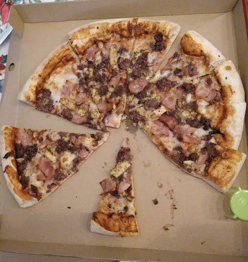 De pesadilla. Fuimos tres amigos al telepizza de Churriana. Día de fiesta y todos los bares del pueblo llenos. A las once y media de la noche. Pedimos tres pizzas iguales, la bacon crispy gourmet. Al principio nos dijeron que a las doce cerraban pero que nos servirían. Nos dijeron que tardaban de DIEZ A QUINCE minutos en servir. No nos importó porque éramos de comer rápido y para las doce estaríamos acabados. No obstante en vez de comer en la terraza preferimos coger sitio dentro, por si por algo nos pasabamos de las doce, al menos que pudieran recoger la terraza. Dan las doce y justo a esa hora (media hora después del pedido) nos dan las pizzas ya en sus cajas. Aun quedaba gente en la terraza comiendo por lo que le pregunté si podiamos quedarnos mientras recogían. La que nos dió las cajas que era otra chica diferente a la que nos tomó el encargo nos dice que no, que están cerrados. Nos fuimos un poco sorprendidos por el mal servicio y cuando nos da por abrir la bolsa de las bebidas, ya en la calle, me encuentro que una bebida está mal. Vuelvo al establecimiento (no habían pasado ni tres minutos) y me encuentro a esta señora riéndose con otro chico y cuando me ve se queda parada en seco, le cambia la cara. Le digo que la bebida está equivocada y rápidamente me la cambia. No se porqué tenía la sensación de que se estaba riendo de nosotros. Nos montamos en el coche y buscamos un sitio donde comer más tranquilos cerca de un parque del pueblo Cuando abrimos las pizzas nuestra sorpresa, ni estaban cortadas en porción, ni teníamos servilletas, y una de las pizzas eran cuatro mini pizzas que no tenían que ver nada con nuestro pedido. Uno de nosotros se quedó sin su pedido y las pizzas cortándolas con las manos. Ya sé de qué se reía esta señora. Un 0 para el telepizza de Churriana y su...