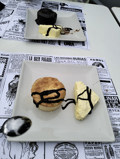 De postre: coulant de chocolate blanco, coulant de chocolate negro y tarta helada.