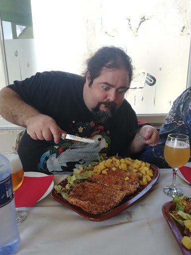 Read moreTrato horrible. Nunca me habian mandado a buscar otro restaurante Estamos de viaje en semana santa y teniamos que parar a comer a mitad de camino. Paramos en este bar porque vimos bastantes reseñas de cachopos. Cuando llegué, el dueño estaba viendo una partida de cartas de una mesa sin fijarse ni en quién entraba por la puerta. Despues de 5 minutos esperando en la barra, llega una camarera portuguesa y me dice que me espere que está haciendo cosas. Despues de unos minutos más esperando a que se paseara por la barra sin hacer nada concreto, le pregunto si tienen abierta la cocina (ya que por ser semana santa tuvimos retraso por las carreteras y eran las 15:30) y me dice que supone que no y me pregunta que para qué. Le digo que obviamente porque queremos comer🤷🏻♀️. Me dice que solo se puede por reserva que aver si no he estado nunca ahi. Le digo que no porque estamos de viaje y solo queriamos un sitio para comer. Y su ultima frase ha sido "por esta zona hay muchos restaurantes. Adios" El cachopo estara bueno si tanta gente lo pone en los comentarios, pero con este trato deja mucho que desear. No vamos a volver, parece que nadie...
