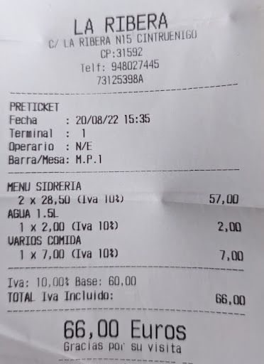 Read more¡Falta de respeto por un menor! ¡Atraco Increíble! Fuimos a comer un sábado su menú de chuletón con un menor de 5 años. La sorpresa llegó en la cuenta cuando nos cobraban 7€ por el cubierto del menor, cosa que ni avisaron ni estaba escrito (en ese caso le hubiéramos pedido algún plato). Pues nos quejamos a la camarera, que avisó al responsable. Éste, de muy malas maneras y con faltas de educación dejándonos con la palabra en la boca y marchándose de nuevo a la cocina nos dijo, que si nos pensábamos que el aire acondicionado y los platos lavados se pagaban solos... Que ese era el precio del cubierto. Además, le preguntamos al camarero si en el menú entraba vino y agua y nos dijo que SÍ. ¡Pues sorpresa! También nos cobraron el agua... Además se llevaron la cuenta de nuestra mesa y no volvieron a decirnos nada. Fuimos a la barra e insistimos que no estábamos de acuerdo en pagar por algo que NO nos informaron, NO estaba por escrito y ni avisaron y salió otro señor más mayor, diciendo que eso era legal porque era su restaurante y sus normas y que no podíamos hacer nada... Con la impotencia, indefensos y la falta de respeto recibida, pagamos la cuenta (ahora sí, nos la devolcieron) y nos fuimos. ¿De verdad hace falta quedar mal con unos clientes que se gastan casi 60€? Estábamos de paso y seguro que lo sabían pero no nos merecíamos este trato tan irrespetuoso. La mayoría de establecimientos se centran en la satisfacción de sus clientes a toda costa, a este le importa un rábano. ¡Ojo con los menores en este restaurante, porque si no piden nada...