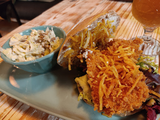 La de pollo (que tardaron más en sacar) quizás algo floja y sobre la vegana no puedo opinar. Las patatas fritas de acompañamiento son naturales, nada especial.