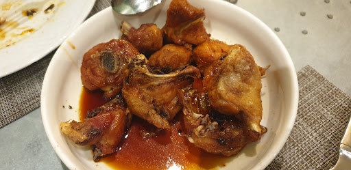 Read moreRealmente estava à espera de melhor serviço e também de melhor comida, pela avaliação que tinham dado. Ficamos na sala pequena, a esplanada estava completa, mas tanto esta como a sala principal com uma decoração muito fina. Pedimos as bebidas e logo trouxeram 4 metades de mexilhão com um preparado com pão ralado. Pedimos para trocar por outra coisa, porque não gostamos de mexilhões eu até tenho intolerância. Mas não trocaram, levaram e pronto. Eu pedi croquetes de presunto e a minha companheira, frango estaladiço com cereais e marmelada de tomate picante, disseram que não era muito picante (parecido com o molho das patatas bravas - especialidade de Madrid e da Espanha toda - ou da nossa francesinha). Mas, ofrango estava seco. Vieram os meus croquetes a desfazerem-se com o espetar do garfo, e o frango veio meia hora depois daqueles... Tudo, sem acomoanhamentos a 10 e 11€, achei demasiado. Ficou muito a desejar. Por metade do preço, na Plaza Mayor, ao jantar, fartei de beber cañas e comer uma tapa enorme com cada uma,...