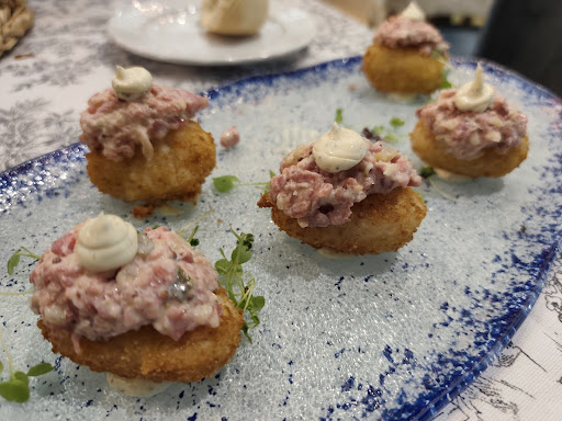 Read moreEl sitio está muy bien decorado y el local es único, acogedor y céntrico en Ciudad Real. La comida está buena aunque el precio tiende a ser un poco elevado. Me fui un poco descontento, a continuación explico mis motivos. El camarero nos habló de una carne fuera de carta que costaba 55 euros el kg, le pregunté de cuanto era la pieza aproximadamente, a lo que me contestó que de 800gr aproximadamente. El sabor de la carne estaba bueno, pero estaba dura para el tipo de carne que era, desconozco el motivo, pero por ese precio tenía que derretirse en la boca y fue más parecido a comer chicle, aunque recalco que el sabor era bueno. Hasta ahí bien, la sorpresa fue al recibir la cuenta, fueron 63 euros la carne, nosotros esperábamos unos 50-55 como máximo, ya que el kg valía 55 euros. Al final la cuenta fue de 113 euros y la cena no valió ese precio. Espero que sean más cuidadosos a la hora de mantener el producto en buenas condiciones si vale ese precio y en ser más precisos con el precio, ya que la carne nos valió más de 10 euros por encima de lo estimado al principio. Por lo demás es algo diferente en Ciudad Real y espero si vuelvo poder cambiar mi reseña. Espero que les sea de ayuda y recalco que es mi...
