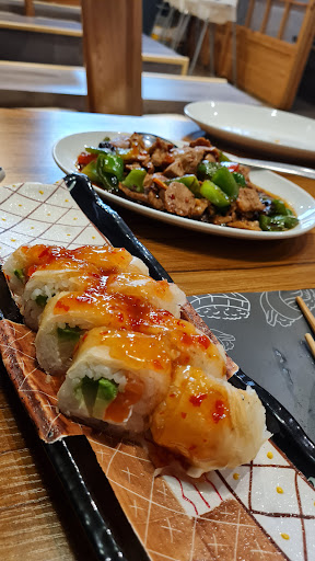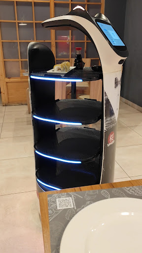Read moreVery busy on a weekday lunch. Nearly full. Staff very attentive. Plenty of them too. Menu was verrrrryyyyyyyy looooonnnnngggggg with 335 dishes to choose from 🧐. The sushi hand wraps were excellent. The prawns with noodles was simple but tasty. The little robots that deliver your food to your table are cute. We also had gyoza. All in all a good experience and a reccomended venue. We...