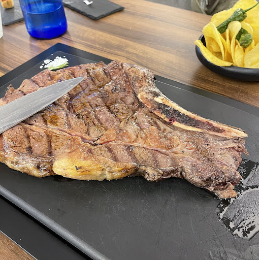 Read moreComimos unas croquetas de jamón con papada ibérica muy ricas y un chuletón de vaca madurado también muy sabroso, aunque ciertas zonas bastantes duritas, de masticarlas un minuto.