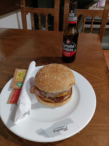 Paramos por las reseñas, yo no sé si han cambiado los dueños o qué, pero no tiene nada que ver con las reseñas, la comida sin más, eso sí, bar vacío, completamente vacío domingo de julio a las 15.00h, han tardado 45 min en servirnos 4 hamburguesas. El sitio sucio, los vasos sucios, un calor abrasador, las mesas sin recoger, la camarera sin atenderte y fumándose un cigarrillo en la calle, el dueño que por fin salió de la cocina a traernos la comida después de preguntar un par de veces si iba a tardar mucho, sale con un chándal negro que no le caben más manchas. EXPERIENCIA...