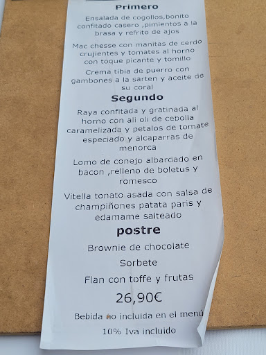 La carta de Es Nàutic se compone de platos que, sin duda, destacan por su sabor. La cocina ofrece una variedad de opciones que, aunque son de fácil elaboración, saben cómo deleitar el paladar. Los ingredientes frescos y de calidad son evidentes en cada bocado. La presentación, si bien adecuada, no sorprende ni maravilla. Los platos se sirven de manera ordenada, pero carecen de ese toque artístico que los haría destacar en una mesa de un restaurante con pretensiones mayores.