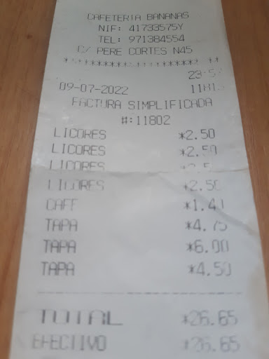 I've been to Bananas yesterday and I was really surprised by how good and friendly the service was🥰The waiter even gave us a special dish for free because I've never been able to try it in germany☺️In general the food as been very delicious and wasn't too expensive at all for Tappas:) At the end the Chef showed up(Captain Nensi)and talked to us about this restaurant and the food which was intersting☺️he was really friendly and cooks amazing food. I'd recommend this place to everyone who searches for good Spanish Tappas in Ciutadella and doesn't want to spend a lot of money🥰🥰 well...