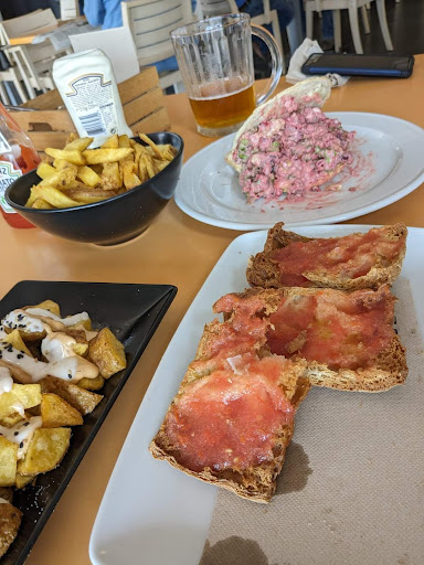 A lovely place to meet and eat, a stone's throw from the beaches Platja Gran and Plata Petita not far from Ciutadella centre. It was convenient for our hotel, so we ate there many times during our holiday. We tried various tapas, burgers and kebabs, salads, drinks both alcoholic and non alcoholic, (with a good selection of teas) at lunchtime, for dinner, or just a drink. We both enjoyed the falafel with chicken popcorn and onion rings. I also liked the chicken burger with goat's cheese and fig, whereas my husband enjoyed the mixed meat kebab, and beefburger. The staff were very friendly and greeted us as old friends. Highly...