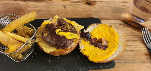 Read moreNO VAYAIS!!! Nosotros cometimos el error de no leer las reseñas negativas y mal hecho por nuestra parte ya que al final nos pasó lo que al resto de clientes. De primeras decir que es cierto que hay clientes de primera y de segunda, ya que hay gente que vino mas tarde que nosotros y comieron antes. Nosotros estuvimos esperando para que nos tomaran nota unos 15-20 minutos y una vez conseguimos nuestro objetivo tardaron otros 45 minutos en servirnos la comida (solo pedimos 2 hamburguesas, debe ser que al igual que las pizzas deben de traerlas desde Italia en avión, las vacas se van a cazarlas al campo). Yo pedí la hamburguesa más cara de la carta y la verdad que dejó mucho que desear, un trocito de carne de "180" gramos que llevaba un crunchi de nachos que eran 4 nachos mal puestos con una misera loncha de bacon raquitica y algo de salsa cheddar (se supone que tenia triple de salsa, no me quiero imaginar como sera la que lleva solo una racion de salsa). Por último decir que la ateción por parte del camarero fué nefasta, un tipo grosero que estaba de mala leche, peleandonose con sus compañeros e insultándoles y tirando los platos por ahí como si quisiera romperlos. Adjunto foto de mi plato estrella para que no cometan el error de pedirse lo mismo si es que han sido tan atrevidos de venir...