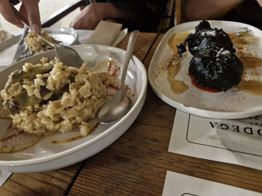 A restaurant along the marina of Ciutadella in Menorca. Its neighbouring Jazzbah, a popular night spot. We opted for al fresco tables, and the amount of foot traffic along the small walkway didn't really bother us. The menu has options for vegetarian and they also have a good selection of seafood. They serve an interesting selection of fusion dishes; Spanish and other cuisine. We had the wagyu beef charcuterie with nuts, the umami was bursting, portion was big, the combo of flavour and portion made us struggle to finish it between the 4 of us. I highly recommend the mushroom dish and the artichoke risotto. We also got the cuttlefish couscous, but the flavour was a bit artificial (flavouring) to me. Price is on the high side compared to others...