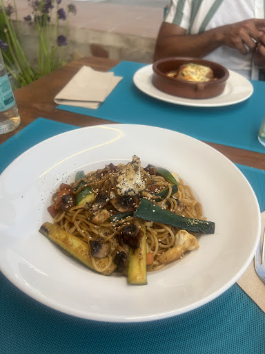 The best food in Menorca we had. You will enjoy it even if you're not vegetarian. The food is absolutely delicious. We particularly enjoyed the stuffed baked sweet potato (so good!), the stuffed baked eggplant, aubergine ravioli stuffed with veggies with pea sauce, the black risotto with alioli and the zucchini cannelloni stuffed with vegetables & sweet potato. We visited the restaurant 3 times during our short stay in Menorca. The restaurant is few steps away from fantastic views offering a beautiful walk along the seafront. Head there to admire the sunset and then enjoy a delightful dinner at this lovely, family owned restaurant, where you will be welcomed with friendliness and impeccable service. Don't miss...