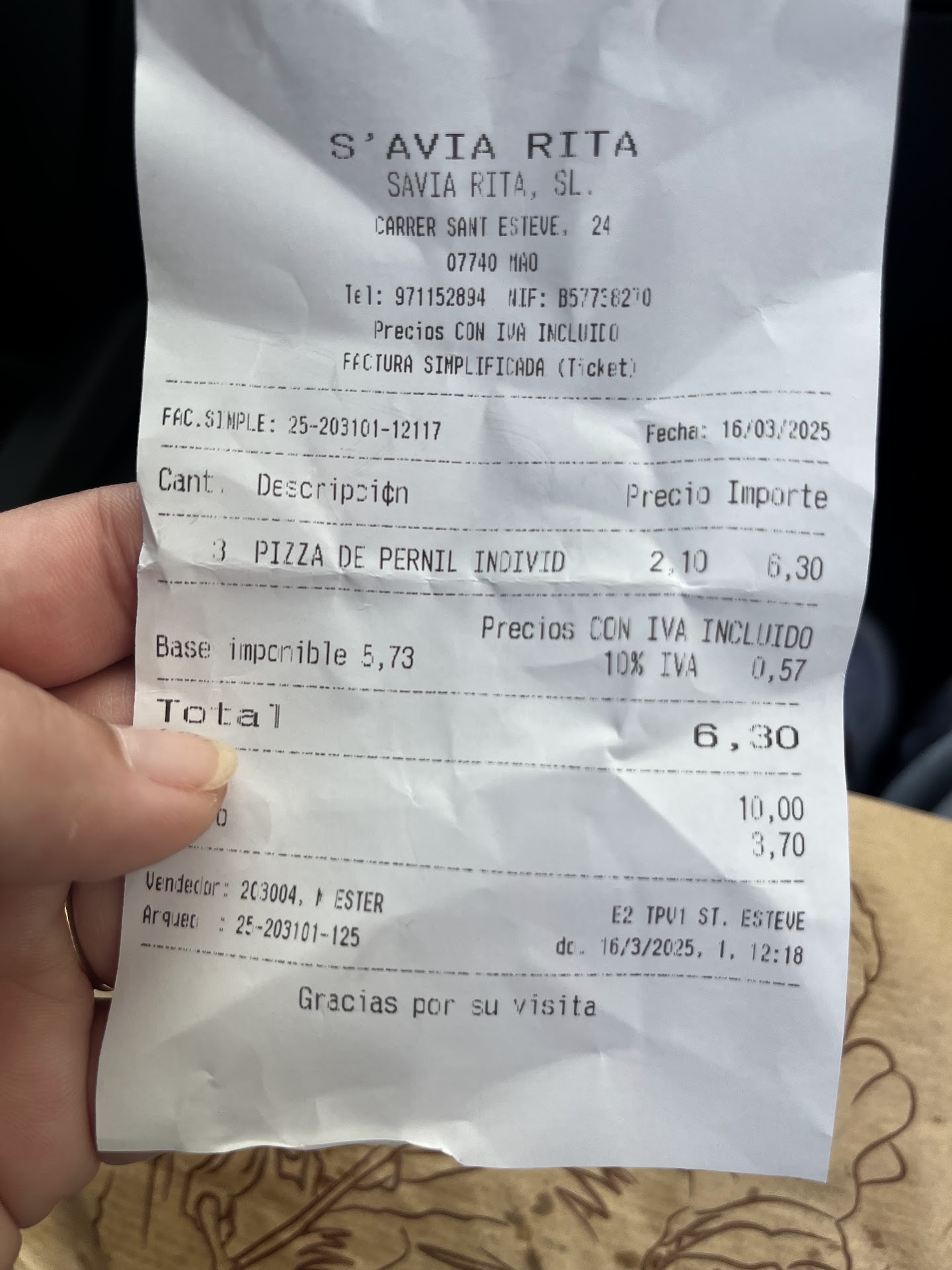 Muchas gracias! We stopped here yesterday with the children to taste a traditional Menorcan pastry - the ensaimada was perfecto. Melt in the mouth delicious. But what will stay in our minds more was the beautiful lady who served us with an incredible smile and huge welcome. She was the loveliest person I have ever been served by. She was happy to listen to our attempt to converse in beginner Spanish and was so encouraging to our son, treating him like a family member. We wished we could have stayed longer as this was the perfect experience of a Menorcan bakery cafe with a tempting selection of sweet and savoury treats and an unforgettable lady serving at the counter. We will certainly be back for a longer...
