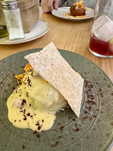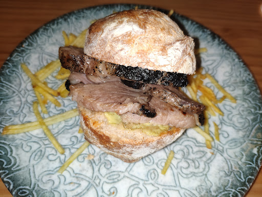 Nos decepcionó un poco, y por eso quiero hacer una crítica constructiva. La comida no es mala, simplemente el precio es desorbitado por lo que ofrecen. La minihamburguesa de buey... claramente no es de buey, pero bueno, esto lo hacen el 95% de restaurantes. El problema es que me parecio que ni era casera. La carne apelmazada tipica de las hamburguesas que piden de fuera y solo hay que quitarle el plastico. No estaba mala, pero no para valer 4 euros y mucho menos para que la llamen minihamburguesa de buey. El brioche no estaba malo, nada del otro mundo pero bien. La tortilla con trufa y chocolate estaba buena. El minibocadillo de presa normalito, la carne muy seca. La anchoa muy buena, pero claro, a 3.5 euros ya puede estar buena. Y los huevos estrellados con torreznos quiza la mayor decepcion, porque eran dos huevos con patatas paja DE BOLSA (que usaban para todos los platos por cierto). Y una recomendación: queda muy moderno romper los huevos y mezclarlo todo en mesa, pero al hacerlo se le quita la gracia al plato porque los torreznos dejan de estar crujientes y se ponen blandurrios. Igual seria mejor añadirlos despues de remover.