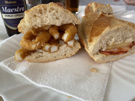 Read more¿Sabes ese sitio donde entras pensando “a ver qué tal” y sales diciendo “¿cuándo volvemos?” Pues eso nos pasó. Pedimos un bocadillo de calamares que parecía recién salido del mar (y del cielo), y otro de lomo adobado con queso que estaba tan bueno que le hicimos una foto antes de comérnoslo…queda inmortalizado! Y como no se puede vivir solo de bocatas (aunque se intente), pedimos unas croquetas de jamón que deberían tener su propio monumento. Cremosas, sabrosas, y con tropezones de jamón que te hacen cerrar los ojos de gusto. Nivel: abuela orgullosa. Todo raciones generosas. El personal, de diez. Súper atentos, simpáticos, y con ese arte que te hace sentir como en casa aunque solo hayas ido a por un bocata. Y qué te digo del precio? Tan bueno que te dan ganas de invitar a todo el bar! La única pega es solo se puede pagar en efectivo. Así que nada de “te hago bizum”, aquí toca tirar de billetes como en los viejos tiempos…por eso no le doy las 5...