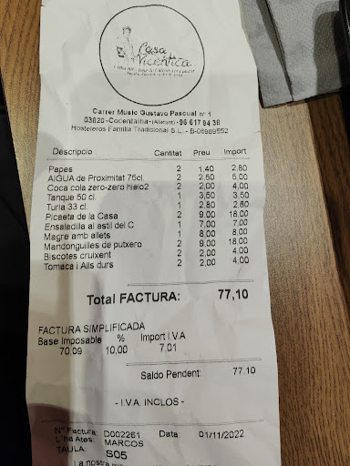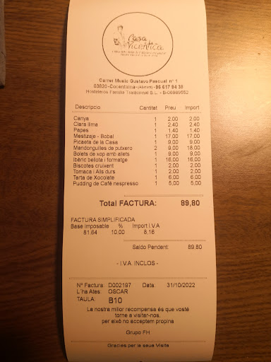 Per últim al moment de traure el compte, nosaltres l’hem dividit entre els 8 que erem arredonint a més preu per persona. Tres de nosaltres han pagat en tarjeta, mentre que els cinc restants hem pagat en efectiu. Després d’esperar una bona estona i vore que el xic estava començant a replegar les cadires i no ens donava les tornes, hem hagut de cridar-lo perquè ens tornés el que sobrava. Però ha estat en la caixa durant una bona estona intentant aclarir-se i cridant al superior, en lloc de preguntar-nos com ho haviem fet per aclarir-se. Finalment, quan havia de tornar-nos 9€ exactes, ens ha...