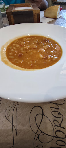 Yo pedí migas para probar algo típico y con tan mala suerte que se les habia agotado en día anterior. Pedí algo casero y me ofrecen un revuelto de ajetes que son de la zona y cuando sale el plata, ¡sorpesa! habia huevo y setas d bote pero ni un ajete. Pregunté al camarero y me retiró el plato se lo llevo a la cocina y me traen el plato llevo de ajetes de bote, chorreando el revuelto de agua y aceite pero eso sí, ne lo habia puesto un adornos de vinagre de modena en el borde del plato.