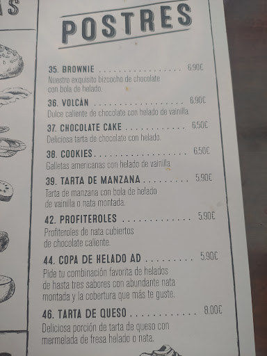 Otro punto negativo a destacar es que la calidad de los ingredientes ha bajado mucho. Como he mencionado anteriormente, conozco muy bien lo que se servía en el menú diario. De primero siempre pedía las quesadillas de queso. Antes tenían, nachos, guacamole casero y crema agria, junto con las quesadillas que estaban rellenas de queso y un ligero toque a pimientos (o algo por el estilo). Ahora el "queso* que usan de relleno es una pasta insípida, y el guacamole ya no parece casero. De postre hemos pedido brownie, y la verdad es que es más bien un bizcocho de chocolate, sin mucha gracia la verdad. Nada de chocolate caliente o una bola de helado de vainilla que le de contraste frío al postre. Espero que el de la carta no sea el mismo porque te cobran por el 6,9€ nada menos...