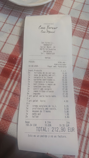 Read moreUna gran decepción. Hemos ido 5 comensales. Las alcachofas a la brasa siguen estando buenas cómo siempre . Los cargols a la llauna tambien bastante aceptables. Los segundos bastante normalitos . Pedimos un poco de pan , especificando que yo no quiero y por 4 trozos de pan sin tomate ni nada nos han soplado casi 20 euros en la cuenta, cobrándonos el pan con tomate y supuesto porrón que ni hemos pedido ni llegó. Con la comida aún hay un pase, pero los postres que son la guinda de cualquier restaurante ...solo dos postres caseros de toda la carta , el resto los peores postres que yo he probado en años . Mi marido ni siquiera pudo comerse el suyo , un presunto crep con helado , por llamarlo de alguna manera, porque cualquier parecido con un crep es pura casualidad. Finalmente una cuenta de 213 euros por una comida normalita para 5 personas , teniendo en cuenta que mi hija comió una sopa y unos canelones. Vaya una pena un restaurante que siempre nos ha gustado , hace dos meses ha habido cambio de dueño y ya no...