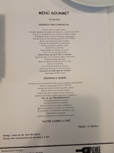 Read moreEl Palique centra su oferta en un amplio y variado menú, en el cual se elige dos platos, un postre (o café) y bebida (cerveza, botella de vino o refresco).