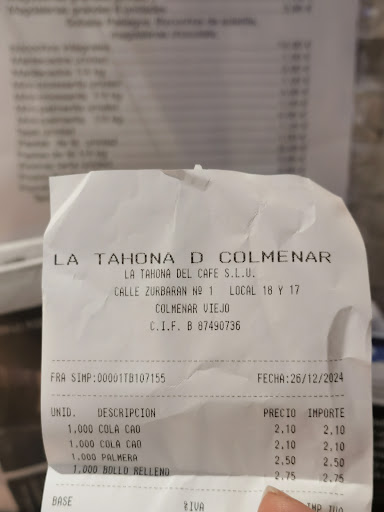 (ANTES) La Tahona de Colmenar es conocida por la calidad de sus productos de elaboración diaria. Las pastas de té son de las mejores que puedes adquirir en la localidad y las rosquillas almibaradas especiales vuelan siempre que las pones en la mesa, son un manjar delicioso pero solo las conseguirás si visitas la tienda en fin de semana o te acuerdas de encargarlas con antelación. Recientemente han abierto una pequeña cafetería anexa a la tienda donde puedes tomar un café mientras disfrutas del aroma del horno de pan y degustas uno de sus...