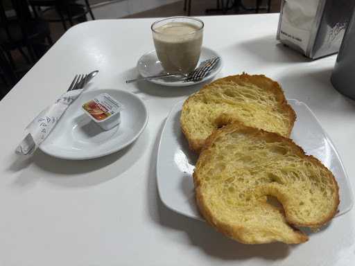 He pedido un cruasán, como casi siempre que prueba un sitio por primera vez. A sabiendas de que no es una pastelería o Café. El personal es lo que más a destacado a mi parecer, muy amable y rápido. El cruasán estaba bueno, no es de bollería (bolsa). Para no ser una pastelería, estaba rico, aún sin ser un muy buen cruasán de mantequilla. El establecimiento tiene mesas en el interior y una terraza bastante amplia. Al estar en el centro del pueblo, la terraza tiene bastante ruido ya que hace esquina y pasan tres calles al lado, pero aún así es agradable sabiendo donde te encuentras. El precio bastante bien, 3,25€ . Creo que es una buena opción en caso de estar en haciendo algo en la...