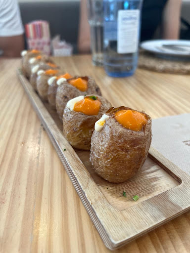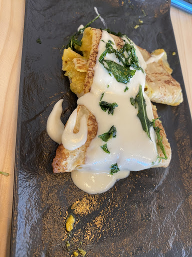 Read moreFuimos ayer, 7 de mayo de 2023, a celebrar el Día de la Madre, reservamos una mesa de 8 personas en el salón interior. En primer lugar, le doy un 10 a la forma tan sencilla de reservar a través de internet, me parece de lo más rápido y eficaz. Por otra parte, comentar que el salón interior es una pasada tanto en decoración como en espacio, aunque esté lleno (ayer estaba al 100%) no tienes sensación de agobio. De las 8 personas que comimos, sólo 2 habíamos ido más veces y todo el mundo quedó encantado, los entrantes muy buenos y los platos principales excelentes, tanto el bacalao confitado, como la pasta (Raviolacci de pera y los canelones de rabo de toro) el curry de pollo con arroz salvaje y la presa ibérica. Terminamos con el postre, cada uno pidió una tarta diferente y cada cuál estaba más rica. Repetiremos sin duda, yo ya había ido a cenar también y a comer el menú diario que es muy completo y tiene muy buena relación calidad-precio. Además, hay varias opciones para veganos y vegetarianos y éso fue otro de los motivos por los que decidí reservar en este restaurante. En definitiva, nos encantó a los 8 y lo pasamos muy bien, ambiente tranquilo y servicio muy, muy profesional y correcto....