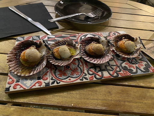 La carta no està preparada per atendre celíacs o intolerants, vam agafar l’únic que vaig poder: braves (no hi ha foto), zamburinyes, músclos, pota de pot i el pastís de xoco (està fet amb farina d’ametlla!). Però lo demés són una llarga llista de pa bao, torrades, croquetes (no hi ha pa sense gluten tampoc). Ho vaig comentar a la cambrera (que deu ser propietària) i em va explicar que no queda igual el menjar sense gluten. ‘Que no li queda igual’ em repetia.🤣 No clar, no és el mateix. Però entre tenir opcions sense gluten i no tenir-ne, prefereixo tenir-ne (encara que pel paladar del que pot menjar gluten, sigui menys bo).