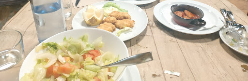 Acudimos al restaurante atraÃdos por las crÃticas positivas de sus bocadillos y hamburguesas. TenÃamos un largo viaje por delante y pensamos que los niños podrÃan comer algo ligero allÃ, y lo fue: Ligero, escaso, insÃpido y caro. De entrada tuvimos problemas para sentarnos juntos, (dos familias, cuatro adultos y tres niños) en la terraza y cuando lo hicimos ya nos sentimos obligados a pedir algo de comer al pedir las bebidas. Craso error, ya que con las bebidas, cualquier bebida, incluso un café, servÃan un aperitivo; no para nosotros, que aunque se lo insinué a la camarera, pasó del tema. Entiendo que es prerrogativa del establecimiento dar o no tapa, pero no deja de ser de mala educación hacer una distinción tan peregrina, perjudicando de hecho al que va realizar un gasto muy superior. Cuando fuimos a pedir la comida tanto la cartelerÃa fija, como la carta que se nos trajo a la mesa sólo mencionaban los platos del restaurante y aunque le preguntamos directamente a la camarera si tenÃa algo "más de niños" nos remitió a lo que al final tuvimos que pedir, a saber: Unas tiras de pollo ramplonas y escasas (12€) Calamares fritos, con harina y sin sal, pero con un gajo de limón (que esto es un restaurante de postÃn), mas escaso aún (los adultos comimos dos rabillos cada uno). (15€) Fritos de pixin, sin sal, sin salero, sin gracia, sin contar. Seis filetes enanos, mal rebozados, para SIETE comensales, que vuelvo a decir, las raciones las marca el restaurante y en eso no entro, pero el detalle marca la diferencia. ( 18€urazos) Y once mejillones, pequeños, pequeños, pero la salsa estaba buena, nos la comimos con las dos raciones de pan que nos clavaron a mayores, con lo que asà nos salió a más de un euro el mejillón. Con las bebidas salimos a 11 euros por cabeza, sin comer y con la sensación de que nos habÃamos equivocado... A veces pasa, cuando estás fuera de casa... mala suerte... Pero cuando ya nos Ãbamos, vemos salir a uno de los camareros con una bandeja llena de bocadillos y hamburguesas, desde luego con mejor pinta de lo que comimos nosotros, dirigiéndose a lo que, sin duda, era una mesa de parroquianos habituales. La sensación pasó a ser de que nos habÃan tomado el pelo, de que nos habÃan estafado y de que lo habÃan hecho porque no éramos de allà y el hacerlo no tendrÃa consecuencias...y yo, que jamás he hecho una reseña, me he visto en la obligación de hacer ésta, como aviso de buena fe a todos aquellos que pasen por Colunga. Esta reseña es negativa, pero es sincera y honesta. No está motivada por la mala comida, ni por el mal servicio, ni por el excesivo precio, ni por las raciones escasas... Está motivada porque nos engañaron a sabiendas pensando en que no tendrÃa consecuencias... Pues esta es la consecuencia, que...