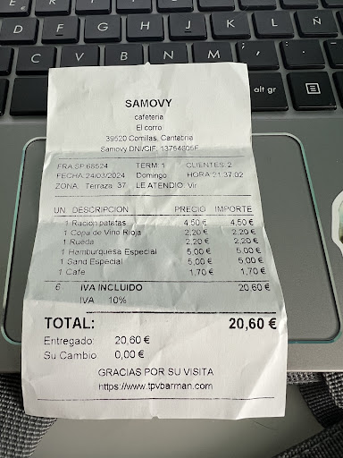Read moreNos atendieron muy bien y rápido, a pesar de que había solo 2 camareros para toda la terraza, se estaba muy cómodo y el trato fue bueno. El menú de fin de semana tiene muy buen precio, 14€, es de lo mejor de Comillas. Pedimos cocido montañés que estaba espectacular, el mejor que probé en Cantabria. De segundo pollo asado y hamburguesa (que resultó que no tenían pan, solo era el filete) pero estaba todo muy rico y la cantidad fue más que suficiente. Sin duda volvería!