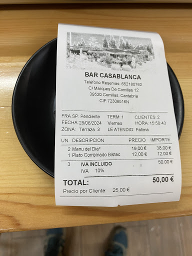 Read morePedimos hamburguesas completas. Con huevo, lechuga, tomate... La carne de cerdo. Una de las peores hamburguesas que he probado en mi vida. Las patatas refritas unas cinco veces, llenas de aceite, duras y sin terminar de hacer. Ni queriendo las haces peor, q sé cómo funciona una cocina. Nos sentaron, de primeras fuera. Había una humedad insoportable. Cuando pudimos, entramos. Pero como estaba todo abierto dio igual. La música del bar es de discoteca, para cenar muy incómodo, supongo que a la camarera le animaría. Pero es que además se juntaba con la música de las ferias que hay fuera!! Que era lo peor! Sentías que estabas en las fiestas de un pueblo. Luego, 8,5 euros una hamburguesas de cerdo, mal hecha y con un pan malo.... Patatas crudas repletas de aceite de mil sabores.... Sin las patatas no habría quedado tan tan tan mal, pero fueron la guinda del pastel. Pasé frío, humedad, calor... Al día siguiente, menos mal que volvíamos a casa ya, mala. En general no recomiendo Comillas en temporada alta. No encuentras buen servicio en ningún local. Para el estatus que tiene, la gastronomía y el servicio de los locales,...