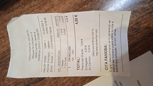 Estuve este verano en Comillas de visita turística con mi familia. Por desgracia nos paramos en este antro dado que eran las 3 de la tarde, teníamos hambre e íbamos con un niño pequeño. Al entrar nadie nos atendió ni nos dijo donde nos podíamos sentar ni nada... 😒 Pues nos fuimos a la zona de las mesas que está en una terraza/patio lleno de piedras, las mesas en desnivel y un pedazo de escalón que flipas. Nos sentamos y tardan como 15 minutos en venir a ponernos un mantel de papel y luego otros 10 en tomarnos un rnota. Mi suegra pide un plato de paella y el dueño (borde y antipático a rabiar) le dice que un solo plato no puede pedir, que pide el menú entero o nada.😨😨😨. Le decimos que solo queremos algún plato único o algún bocadillo y dar de comer el potito lo niño y nos dice el muy impresentable que para eso tenemos las mesas de fuera y que no sabe porque hemos ocupado la mesa para nada. Yo flipando!!! Y con mi hijo sin comer pues decidimos salir fuera del "salón" y sentarnos en la barra para pedir unos bocadillos de lomo que dejaban mucho que desear. Pan correoso, poca cantidad,caro... En fin, si vais a Comillas y leéis esto POR FAVOR NI SE OS OCURRA PARAR AQUÍ! ES LO...