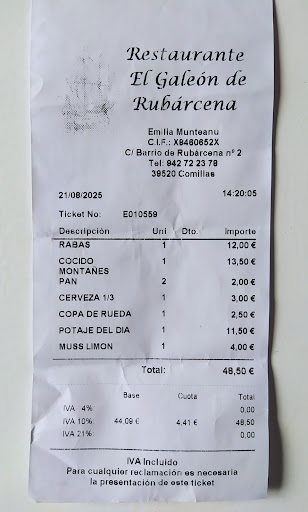Read moreLa experiencia no fue del todo buena. Pedimos menú de 20€. Tuvieron un error en la comanda y trajeron platos equivocados, los cambiaron, pero lo malo fue que nos pusieron mala cara para hacerlo como si los hubieramos cambiado nosotros. En paralelo, sí solicitamos un cambio nada más probarlo para un comensal que pidió arroz caldoso de segundo (y evitarle el mal trago), porque los que lo pedimos de primero, valoramos muy negativamente ese plato (no lo podáis, es simplemente un arroz cocido con hierbas de despiste y cuatro almejas, pero carente de sabor). Para el servicio fue un problema irresoluble y no nos cambiaron el plato de arroz, que, obviamente, se quedó tal cuál sin tocar dada la insipidez del mismo. Para el resto de platos pedidos, bien en general sin nada notable, pero rico (chuletón, cocido montañés y patatas y algo más de picoteo). El precio del menú, muy bien, el contenido normal, el arroz lo peor y el servicio normal, exceptuando el incidente comentado, que nos dejó peor sabor de boca...