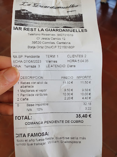 Read moreFuimos a comer unas raciones mi pareja y yo , la relación calidad precio muy mal, pedimos rabas , las devolvimos a cocina porque estaban en mal estado ( es verdad que se disculparon y no nos las han cobrado pero que menos cuando casi nos intoxican) las navajas... ricas pero con arena, pequeñas de tamaño para las navajas que me he comido yo allí aunque puede ser que sea por la época del año nose... sin más para lo que costaban, me parecieron caras, y los mejillones a la vinagreta lo único que se salvo, los pedí porque la camarera me dijo que eran frescos y bueno ... igual del día no, pero estaban bien, te cobran el pan a parte desde la primera racion cosa que bueno es discutible , el servicio bien muy atentas , y todo correcto, ahora el dueño ni se acerco a disculparse por lo de las rabas, un detalle que también me pareció feo, no lo recomendaría, me pareció caro para la mala calidad del...