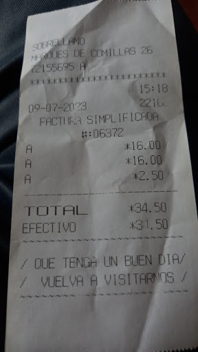 Read moreEs increíble las pocas ganas de trabajar de la gente, llegamos 10 personas a las 22:20 a tomar algo y nos dice el señor camarero, por llamarlo de alguna manera, que lo mismo si viene alguien a cenar y necesita las mesas. Nos sienta en dos metas apretados. Pedimos algo para picar y dice que no tiene carta y que nos levantemos a mirar dentro y si eso hagamos fotos si queríamos. Hablando con el resto de la terraza , les han tratado tan mal como a nosotros o peor. Le pedimos que limpie la mesa y se ha hecho el tonto y nada. Las bebidas calientes, menos mal al vasito con hielo. Y encima te obliga a pagar en efectivo.Llevo viniendo 40 años a Comillas y es la primera vez que me tratan TAL MAL. No os sentéis allí por favor. Primera y última vez, por mal educado...