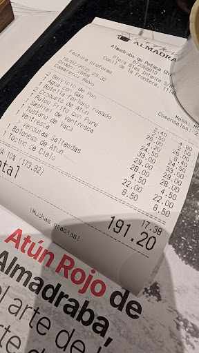 Una experiencia totalmente nefasta, ya que nos arruinaron la cena con la discusión. Sin duda "Cooking Almadraba" deberá mejorar mucho y tomarse más en serio el valor de una buena selección y formación del personal que toma a su servicio, no solo vale dar buen producto como es el caso, ya que como vemos el comportamiento de una camarera puede arruinar la reputación del local, sobre todo si se pretende ser un referente en el sector. Espero que los responsables tomen buena nota de lo que a ocurrido...