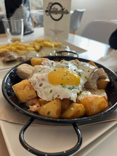 Comida y Bebidas: El restaurante ofrece una carta variada con platos fuera de carta que destacan por su originalidad y calidad. Entre las recomendaciones se encuentran las croquetas de choco en su tinta, la tortillita negra de camarón, y la presa ibérica. Las raciones son abundantes y los precios son razonables.