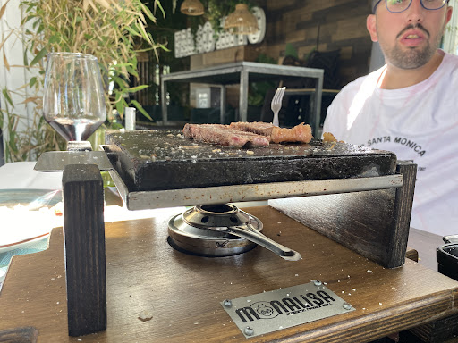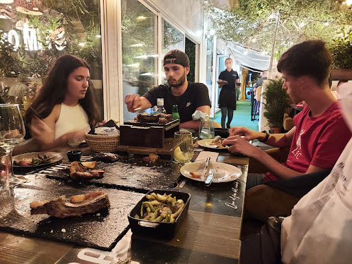 Fuimos a celebrar las vacacion en familia: 10 personas en total (padres, hijos algo más que adolescentes y un niño de 13 años). Nos habían hablado muy bien de este sitio y decidimos probarlo. El lugarces acogedor, con plantas y está iluminado con mimo y calidez. Nos prepararon una mesa oara todos bajo un olivo donde estuvimos cómodos, la mar de agusto). Como queríamos probar un poco de todo, compartimos todo y pedimos tanto carne como pescado. Pedimos atún (buenísimo), pulpo a la brasa sobre un puré de patata delicioso, barriga de morena (algo exótico), almejas con salsa de tomate y jamón (acabamos todos mohando pan), dos chuletones (de charra y de retinto) y una presa ibérica. La carne estaba tierna y jugosa, te la enseñan antes, te la filetean y te la haces tú a la piedra. Bebimos referscos varios, cerveza y una botella de rioja blanco El Coto. De postre, compartimos dos tartas de queso excelsas, acompañadas de uvas y de helado de manzana verde, dos coulant de chocolate con helado de frambuesa y una torrija caramelizada. Todo, 287 euros. El servicio, siempre atento y muy simpático. Como detalle final, nos obsequiaron unos mini gin tonics que pusieron fin a una velada magnífica que a partir de ahora intentaremos repetir todos los años. Muchas gracias y enhorabuena por el cariño, el buen servicio y la excelente cocina. *Somos una familia de madrileños enamorados de Conil y no conocíamos este restaurante ni a sus dueños. Nuestra reseña es sincera y seguiremos hablando de este y otros lugares estupendos de Conil en nuestro blog...