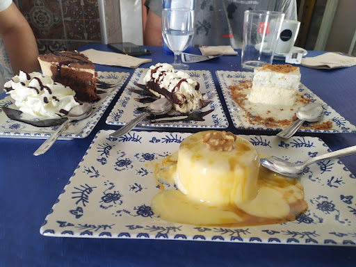 Y los postres... No solo pintaza, estaban buenísimas! Pedimos tarta de queso con base de arroz con leche, tiramisú de café, tarta de Ferrero y cilindro de mus de tocino de cielo. Estaba tan rico todo que solo pudimos sacar dos fotos jajajaja.