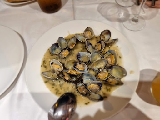 Nosotros cenamos: de primero una sopa de marisco, de las mejores que he comido, y unas almejas a la marinera, también exquisitas.