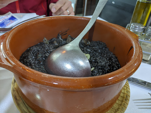 Came to Casa Manolo Fuguilla during a rare rainy day in Conil. Adding to the rain was cold temperatures as well, this meant that we had literally no choice but to have a rice dish. For myself and a friend we ordered the Arroz Negro. Unfortunately for us the dish included unpeeled shrimp and small 10 cent sized clams which I nearly broke a tooth on - note that I have never seen anyone else in Spain do this. Further, I make this same recipe at home and have never added it. Finally the rice itself was not fully cooked as there was cooking liquid in the bottom of the bowl. Staff, service and pricing was still great.