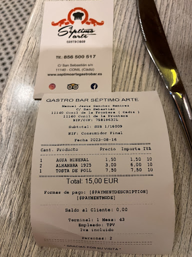 Read moreRecientemente, tuvimos el placer de cenar en El septimo Arte, una joya culinaria que captura la esencia de la gastronomía andaluza en cada plato. Desde el momento en que entramos, fuimos recibidos con una cálida sonrisa por una simpática camarera de cabello moreno y ojos claros cuya actitud amable y profesional hizo que nuestra experiencia fuera aún más placentera.