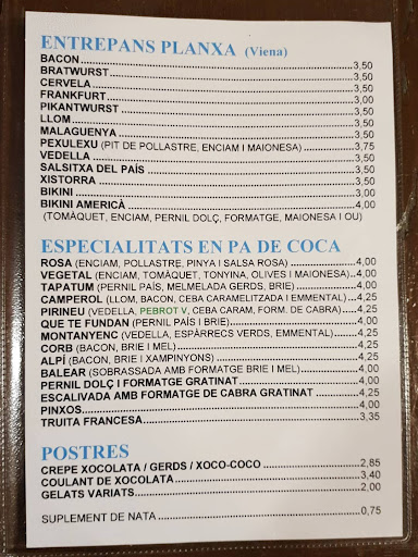 Es un bar restaurante muy popular en el municipio, todo y que sólo abre tarde/noche, durante el resto del día está cerrado. Acude gente de todas las edades pero se podría decir que sus clientes son mayormente grupos de gente joven. El local es rústico con mesas y bancos de madera. El servicio es muy amable y la carta que ofrecen está bien. Se compone de raciones, bocatas, burguers, ensaladas, etc Cuando el tiempo acompaña montan una gran terraza cruzando la call, donde en verano se está genial. Muy...