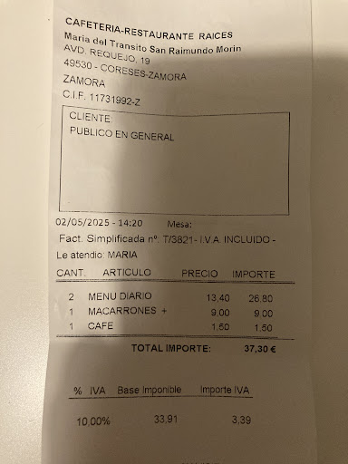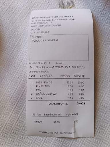 Read moreUna experiencia excelente de principio a fin. Comimos en el Restaurante Raíces y la experiencia fue inmejorable. El ambiente es muy acogedor, con un comedor amplio, bien decorado, tranquilo y perfecto para disfrutar de una comida con calma. Pedimos varios platos y todos fueron un acierto. Platos que nos acercó a la mesa José Luis ( que así es como llaman a su robot ) sí, sí no es broma! Él acerca los platos y sus camareros los sirven. Los platos que pedimos: *Pimientos rellenos de bacalao, sabrosos y muy bien elaborados. *Ensalada de piña con langostinos, muy fresca y original, perfecta para empezar. *Ensalada de salmón y aguacate, equilibrada, con ingredientes de calidad y una presentación muy cuidada. *Chuletas de cordero a la brasa, tiernas, con ese sabor auténtico a brasa que tanto se agradece.