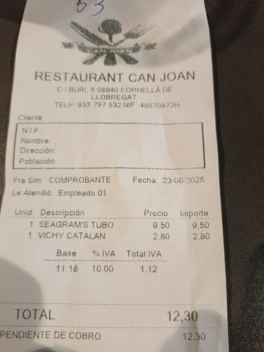 Read moreCerveza carísima, sin tapilla ni nada, trato penoso, jefe o empleado, nose, q deja mucho de desear. Comida no la he probado, ni la probaré, desde luego. Por que aquí no vuelvo. Ya q no le puedo contestar, lo añado en la reseña, me parece una respuesta poco profesional por su parte, y sí, cobran 1,40 y 1,50 por una copa de cerveza en muchísimos restaurantes, tendría que salir más, y con tapa. No 1,90 q es lo q cobra usted y de muy mala gana. Soy camarera de muchos años y si está quemado, cambia...