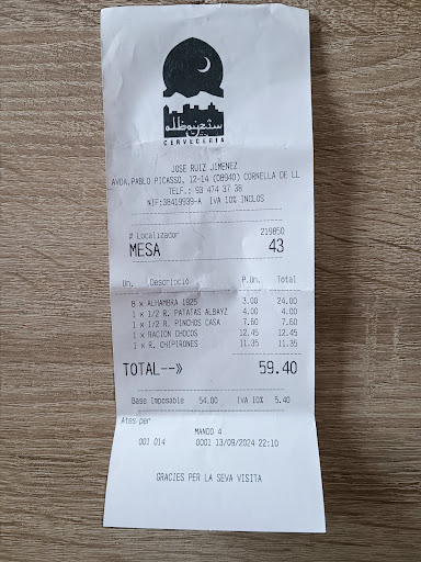 Read moreHola, soy de Granada pero llevo 20 años viviendo en Barcelona, desde hace meses trabajo en Cornellá, al decirle a mis clientes que soy de Granada, me habían hablado sobre un bar llamado albaicin aquí en Cornellá, y por supuesto quería probar, he udo sobre las 13:15h mas o menos. Si al montar este bar, el refente era un bar de Granada desde luego no se han dado cuenta de cómo se trata a un cliente, no han contestado al saludo, ni mirado a la cara, le he pedido que por favor si era tan amable me pusiera una caña, y con desgana y desprecio me ha dicho que me pusiera en algún sitio para que me la picara, la barra estaba llena lógicamente sólo cabía en frente de donde estaba el camero, que de forma arisca y con poco empatia me dice...aquí no puedes. Me busco un lugar que era reducido pero cabía una no!! 20 cañas pero tampoco era de su agrado, sin embargo, para ser cliente nuevo y mi primera (y última) vez allí, no se preocupó lo más mínimo en darme una opción ni explicarme su funcionamiento, labarra,laterraza, los barriles de afuera donde está la gente apoyada tomando cañas, las mesas de dentro, silencio hay menú si no lo hay...Pregunté por una mesa, qué además había bastantes libres, y me dijo también enfadado, eso es para comer!!. Lógicamente dije...Bueno pues nada me voy, y no hizo nada para que un cliente se quede, repita y recomiende a otro. No se parece a un bar de Granada ni de broma, en un bar de Granada un trabajador tiene éste trato, y no pisa un un bar en tó Granada. A mi me gusta probar los sitios para luego asistir con mis clientes, pero desde luego a este no vendré con ninguno. Supongo que les va muy bien y no les hace falta más clientes, les dará igual si uno se va o les hace una crítica, por mi experiencia y las respuestas que veo en las reseñas, que además tienen tiempo para mirar por las cámaras si el cliente rebaña el plato, como el amigo Joan. Yo estoy cara al público y gracias al cliente es lo hoy tienes como bar, y créeme que lo mejor que te puede pasar, es que un cliente te de puntos de mejora, porque el peor cliente, es el que no te dice nada y no vuelve más. Suerte, que en cualquier momento todo puede cambiar. Sí quieres mirar por las cámaras, la hora ya la sabes, levo camisa blanca, pantalón gris y bambas blancas, así sabrás lo que le tienes que decir al que me ha...