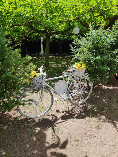 Cuando llegas, si es época de buen tiempo, puedes esperar haciendo un vermut en la terraza/patio de entrada, se está de lujo, debajo la sombra de los árboles y los niños pueden campar a sus anchas sin miedo alguno.