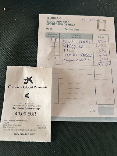 Read moreTodo en su lugar, comida bien, bebida bien y personal súper amable. La sorpresa llegó a la Hora de pagar, el solomillo ibérico con panceta está en 18,00€. Y como verán en la nota que me dieron para pagar viene a 20,00€ cuando lo comento con la chica que nos atendió solo nos dijo que en verano se sube 2,00€ y que luego a partir de septiembre baja a 18 su precio normal. Nos cobra pan que no lo pedimos ni comimos y que son 2,00€(como verán solo ponen 1 cuando éramos 2 los comensales. Me dice que eso es así, yo no lo vi en la carta pero bueno, no tenia ganas de discutir ni estropear nuestro clima ( mi mujer y yo) decidí no continuar. Page y nos fuimos. Sería interesante saber qué opina el dueño de esto y que ocurre en su ausencia porque no es el primer día que vamos y nunca nos ocurrió algo parecido. De una cuenta de 36,00€ a 40,00€. 4,00€ que se los perdió de propina Como en ocaciones anteriores Espero que no sea el último...